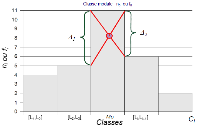 La définition suivante permet de comprendre la démarche à suivre pour calculer le mode d’une manière exacte et qui se trouve dans une des classes appelée “classe modale”.
