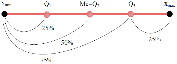 Pour i ϵ {1, 2, 3}, la quantité Qi tel que F(Qi) = 1/4 s’appelle le iem quartile.